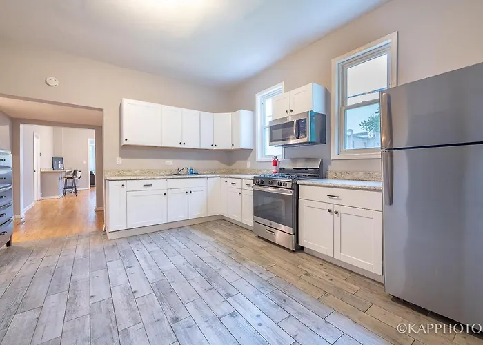 O apartamento Wonderful Home Close To Downtown Chicago - Free Parking dispõe de comodidades de auto-atendimento convenientes, incluindo cozinha comum com refrigerador, forno e utensílios de cozinha. O alojamento está situado a perto da estação de metrô Garfield.